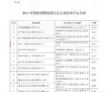 yl6809永利皇宫通过“湖南省企业技术中心”认定